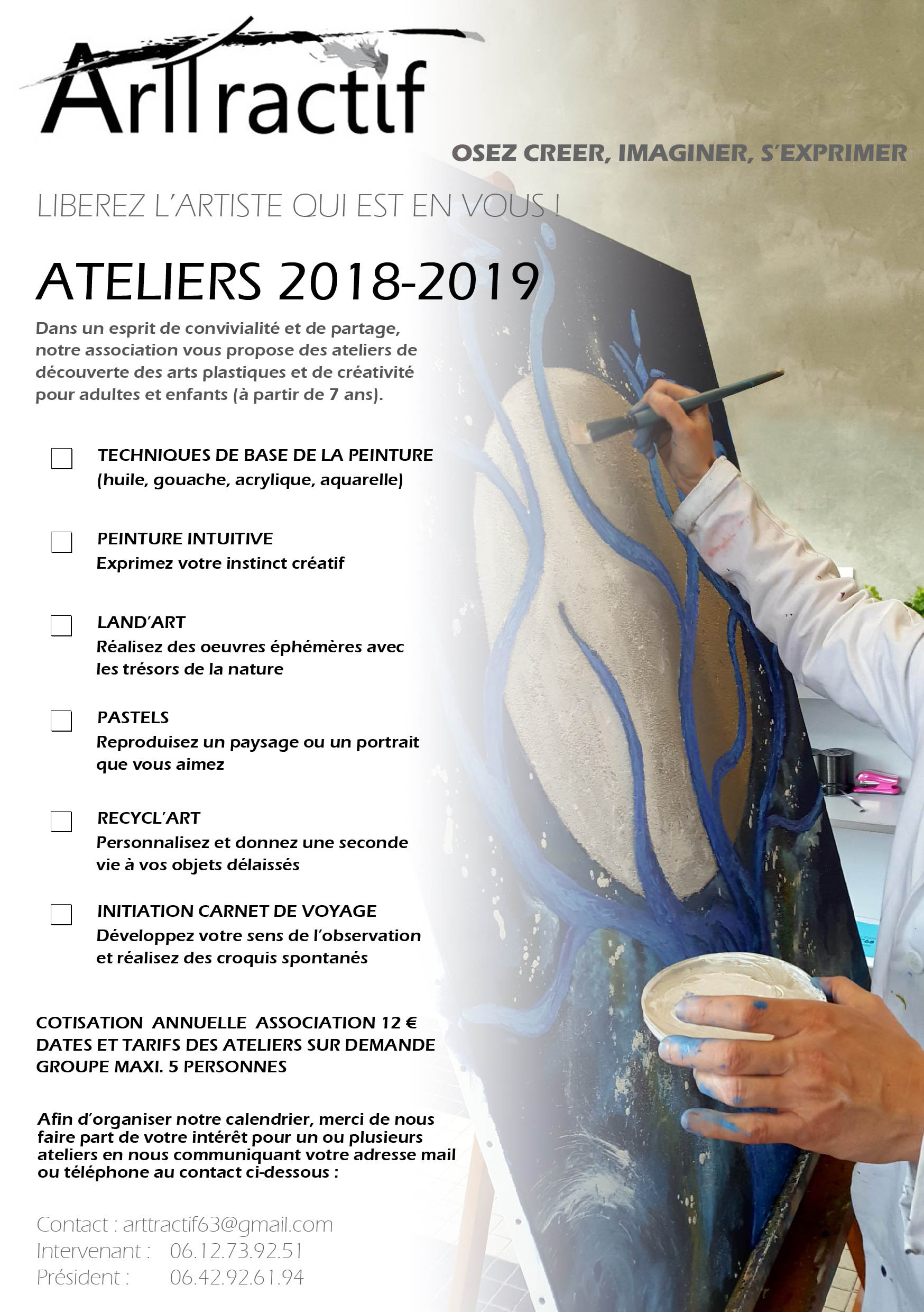 Libérez l’artiste qui est en vous ! Dans un esprit de convivialité et de partage, notre association Art'tractif à Chauriat vous propose des ateliers de découverte des arts plastiques et de créativité pour adultes et enfants.